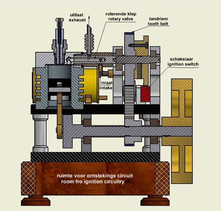 The CAD figure below illustrates the rotary valve system as I made it for this 4-stroke engine.