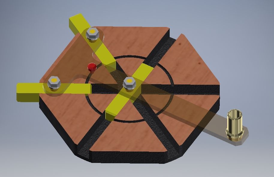 I milled a circle groove in the plate with a radius that is exactly equal to the distance from the red pimple to the center of the plate. On the video you can see how nice this pimple rotates exactly over this circular groove.